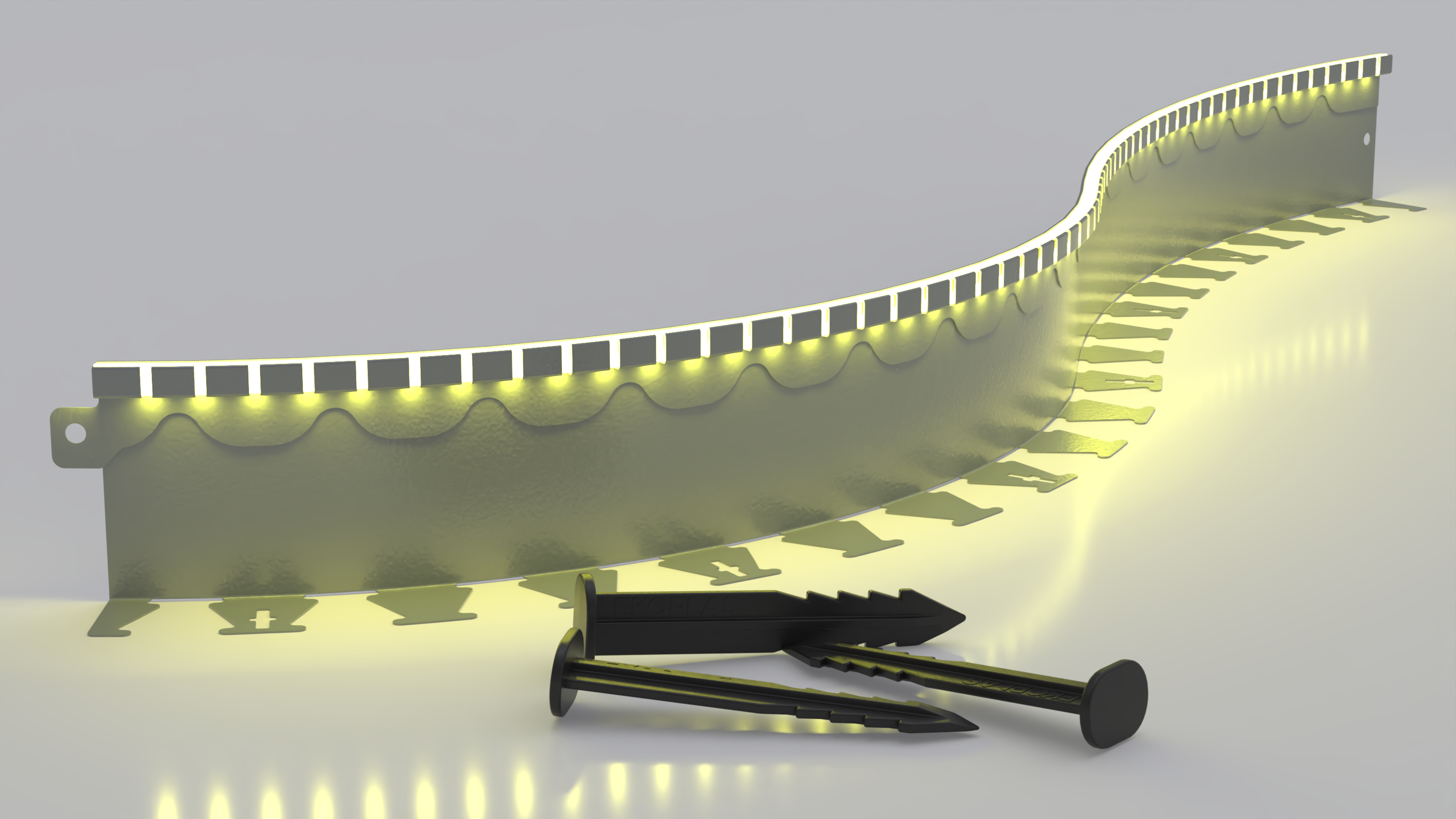 Metrede 3 adet sabitleme noktası sayesinde toprak içinde dengeli şekilde konumlanır ve zamanla yer değiştirme riskini azaltır. LED aydınlatma ürüne dahil değildir; proje ihtiyacına göre ayrıca temin edilir. Uzun servis ömrü ve yüksek yapısal dayanımı ile kalıcı peyzaj projeleri için geliştirilmiş üst segment bir sınır sistemidir.